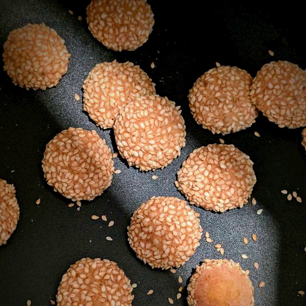 |成分|低筋麵粉、雞蛋、細砂糖、白芝麻、泡打粉、香草粉。